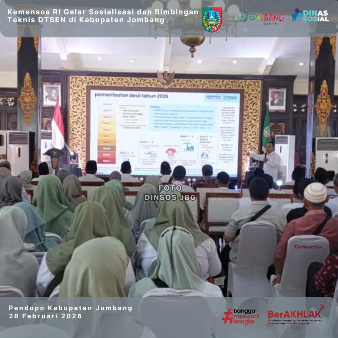ssalamu’alaikum warahmatullahi wabarakatuh, Puji syukur marilah kita panjatkan ke hadirat Allah SWT, Tuhan Yang Maha Esa, atas limpahan rahmat, taufik, dan hidayah-Nya kepada kita semua. Shalawat serta salam semoga senantiasa tercurah kepada junjungan kita Nabi Muhammad SAW, keluarga, sahabat, dan umatnya hingga akhir zaman. Dengan penuh rasa syukur, kami menyambut baik kehadiran website resmi Dinas Sosial ini sebagai salah satu sarana informasi, komunikasi, dan pelayanan kepada masyarakat. Website ini kami hadirkan untuk memberikan kemudahan akses bagi masyarakat dalam memperoleh informasi mengenai program, kegiatan, dan layanan Dinas Sosial secara cepat, transparan, dan akuntabel. Sebagai lembaga pemerintah yang bertugas melaksanakan urusan di bidang sosial, kami senantiasa berupaya maksimal untuk mewujudkan kesejahteraan sosial masyarakat, mengentaskan masalah-masalah sosial, dan menghadirkan pelayanan yang lebih baik dari waktu ke waktu. Kami memahami bahwa pelayanan kepada masyarakat bukan hanya sekadar kewajiban administratif, tetapi juga merupakan amanah dan ladang ibadah. Dengan niat ikhlas, kami berkomitmen untuk selalu hadir, mendengarkan, dan membantu masyarakat yang membutuhkan. Melalui jargon kami “Dinas Sosial Pasti Hadir Ikhlas Melayani”, kami bertekad untuk menjadikan setiap langkah pelayanan sebagai wujud nyata kehadiran negara di tengah masyarakat, khususnya bagi mereka yang rentan dan membutuhkan uluran tangan. Kami juga membuka diri terhadap saran, kritik, dan masukan dari seluruh lapisan masyarakat demi perbaikan pelayanan kami di masa yang akan datang. Semoga apa yang kami lakukan mendapat ridha Allah SWT dan membawa manfaat bagi masyarakat luas. Akhir kata, kami ucapkan terima kasih atas kepercayaan masyarakat kepada Dinas Sosial. Semoga kita semua senantiasa diberikan kesehatan, kemudahan, dan keberkahan dalam setiap usaha kita. Wassalamu’alaikum warahmatullahi wabarakatuh.