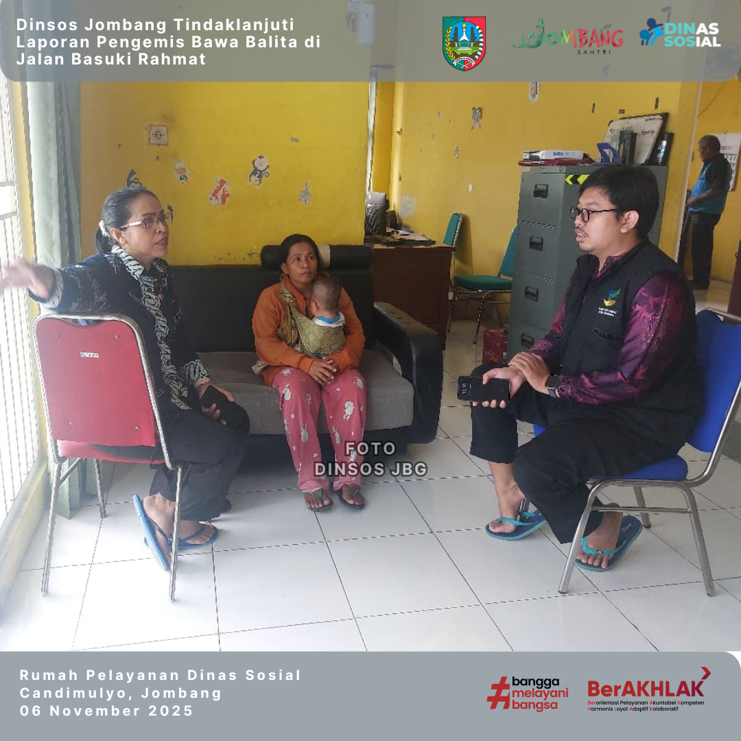 Jombang, 6 November 2025 – Dinas Sosial Kabupaten Jombang melalui Bidang Rehabilitasi Sosial menindaklanjuti laporan masyarakat terkait adanya pengemis yang membawa anak balita saat mengemis lampu di lampu merah Taman Wisata Kebun Ratu Jombang