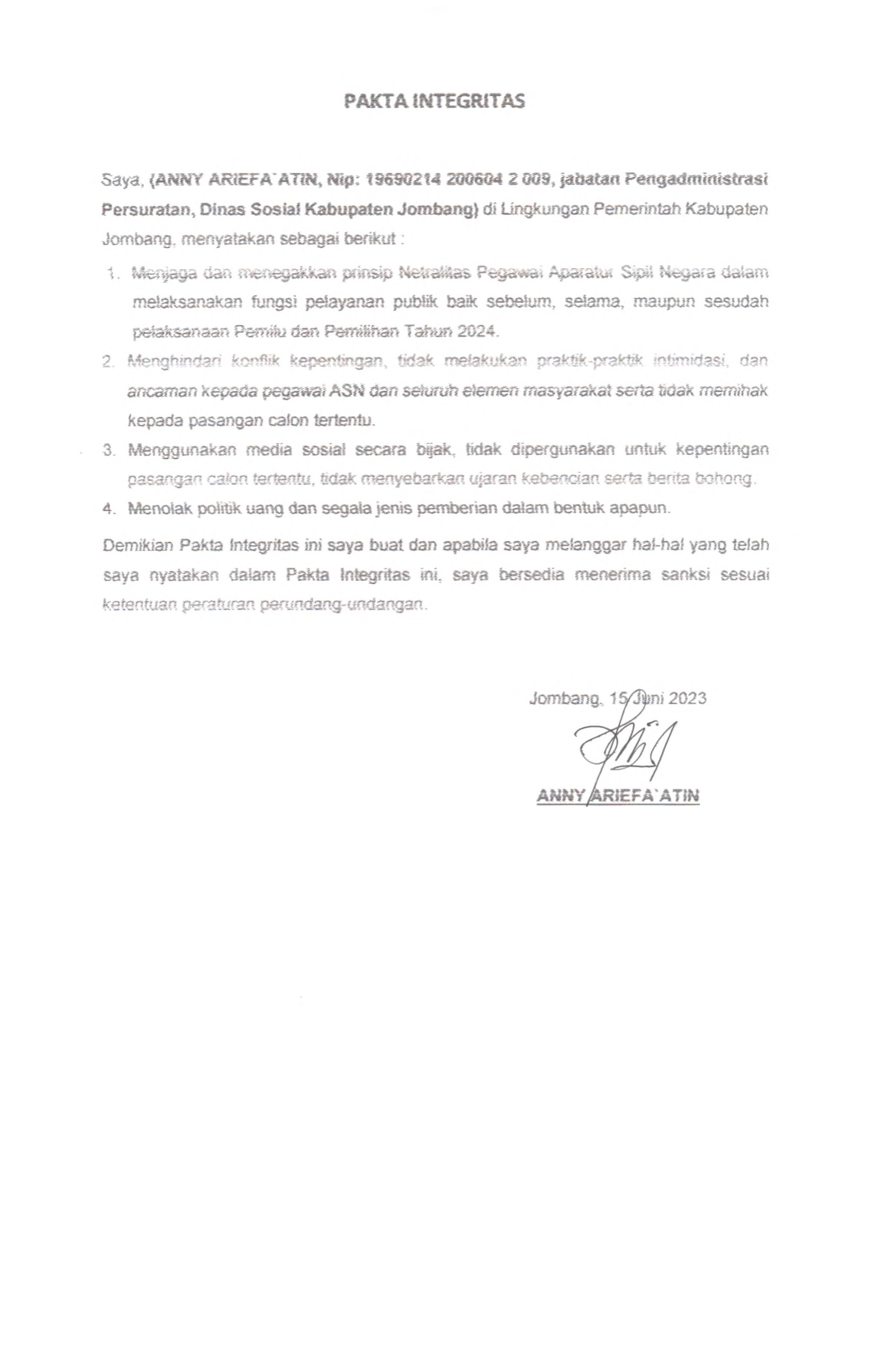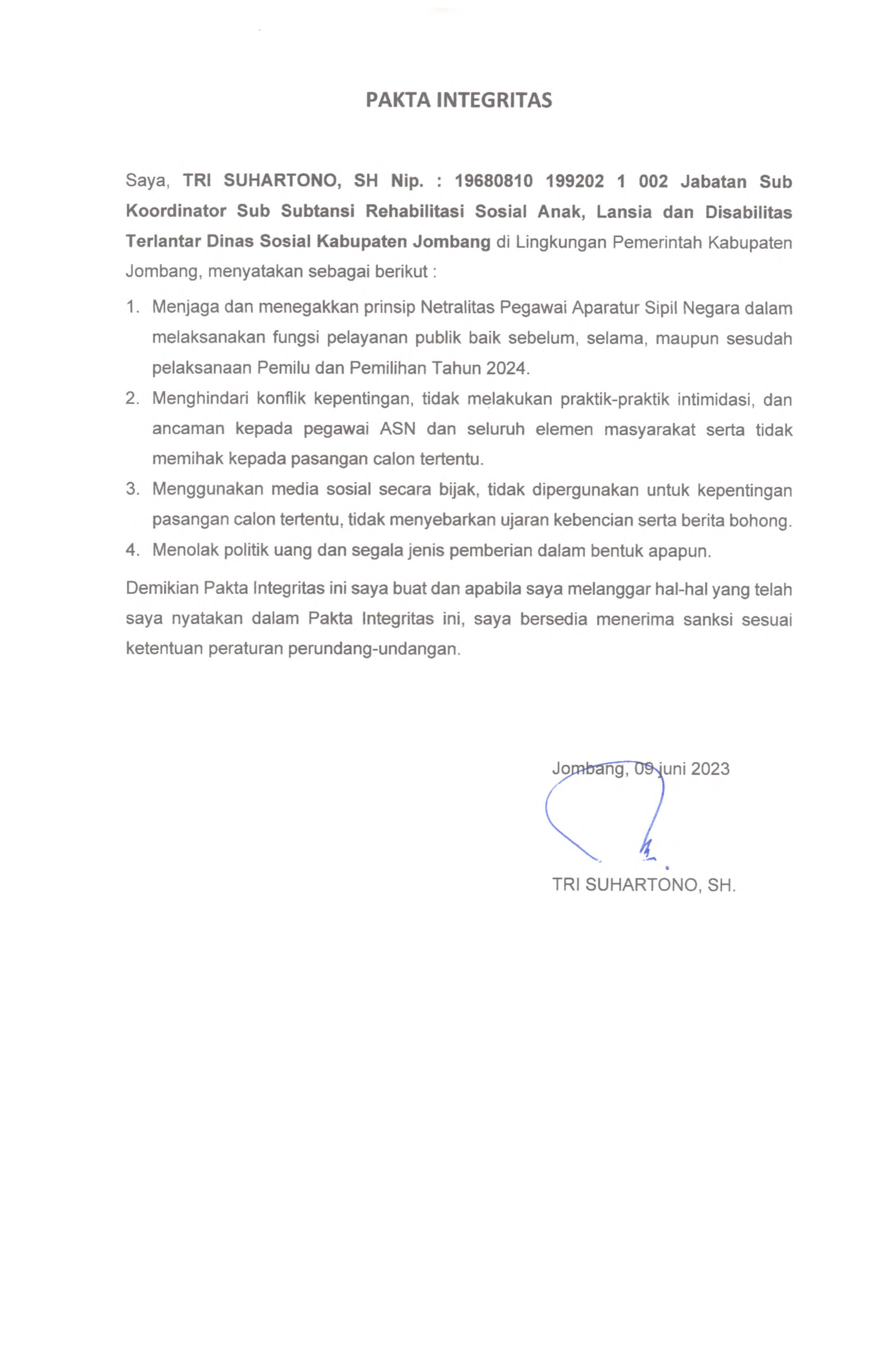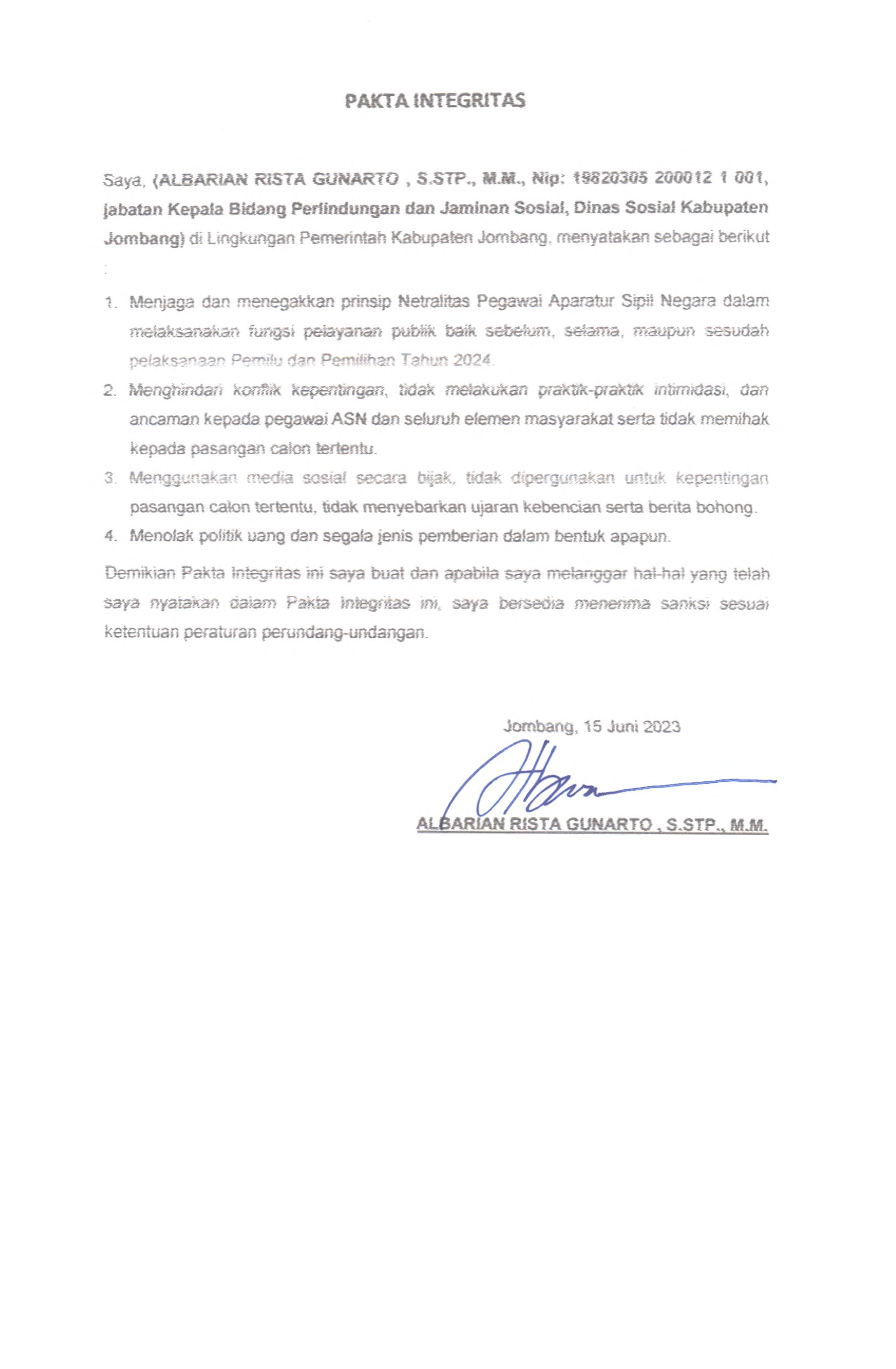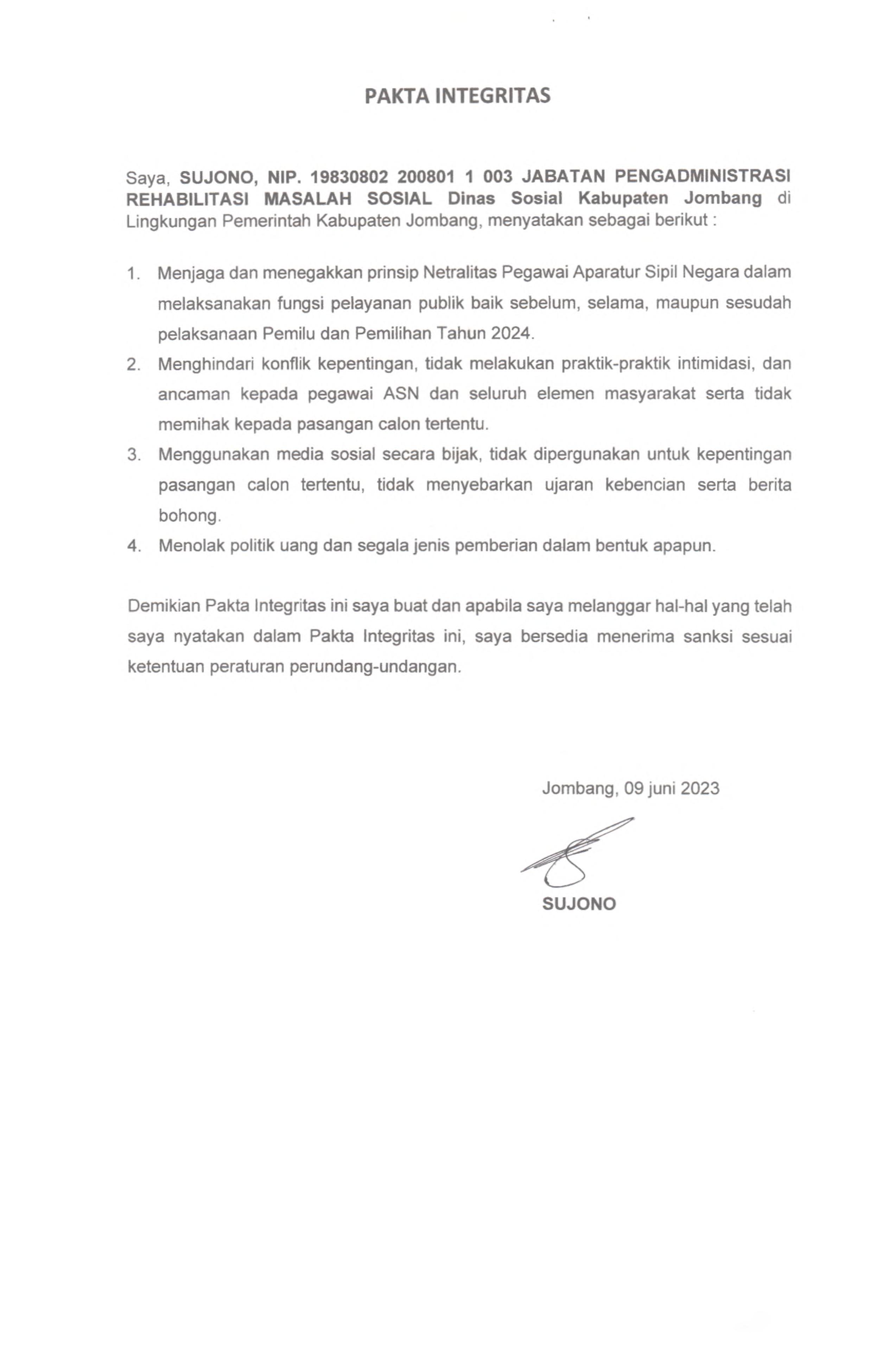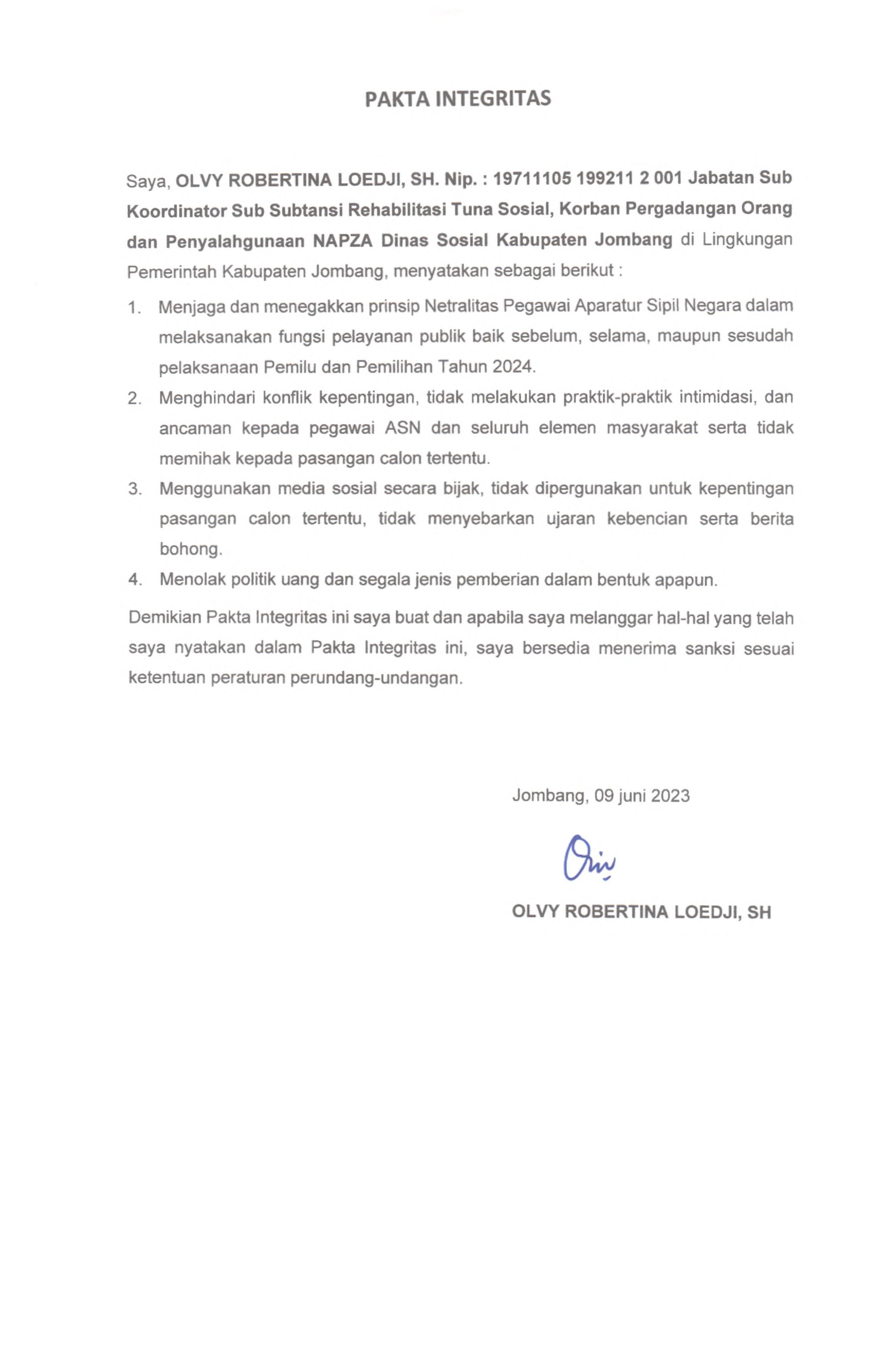 PAKTA INTEGRITAS ASN DINAS SOSIAL 2023