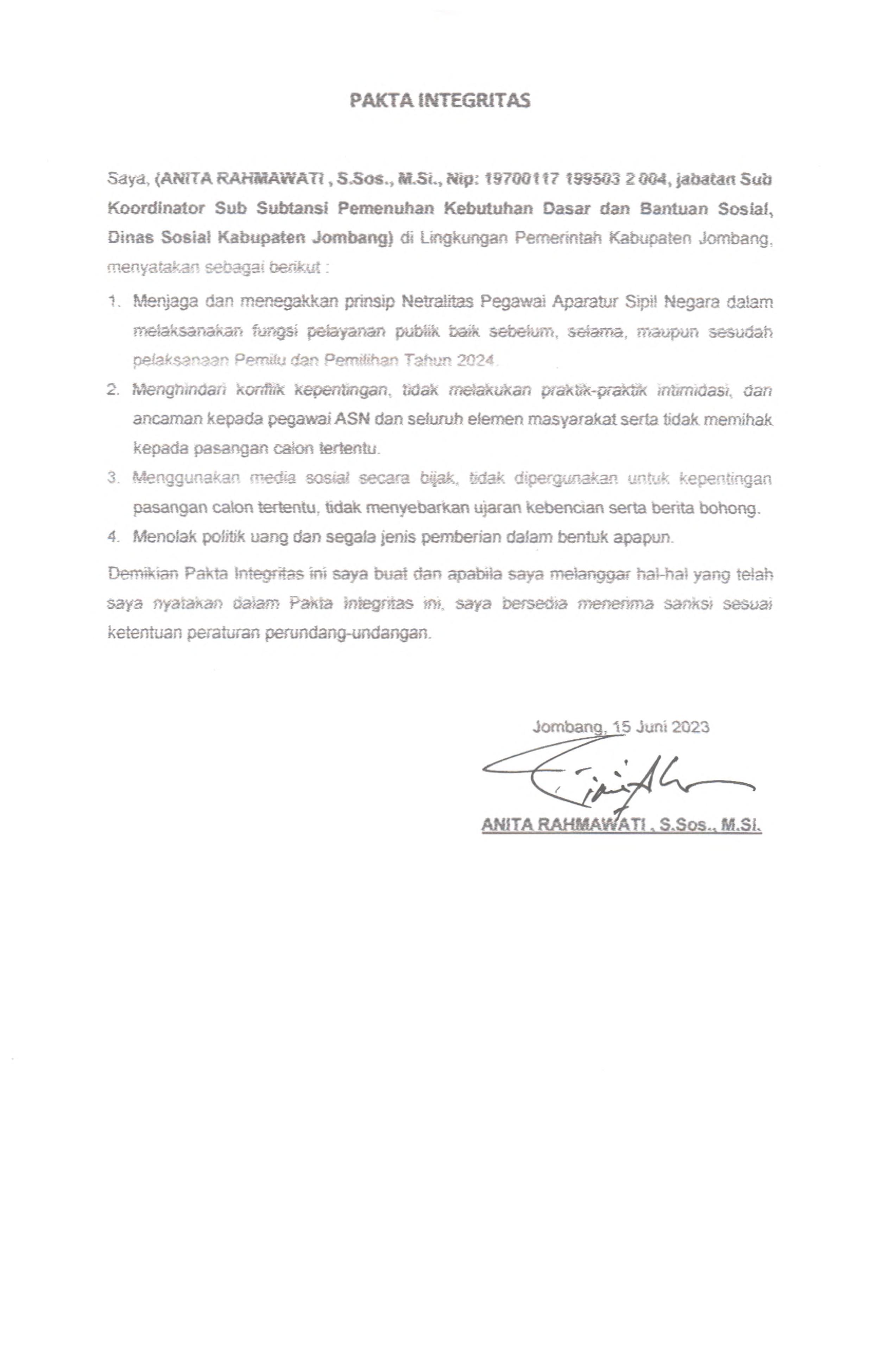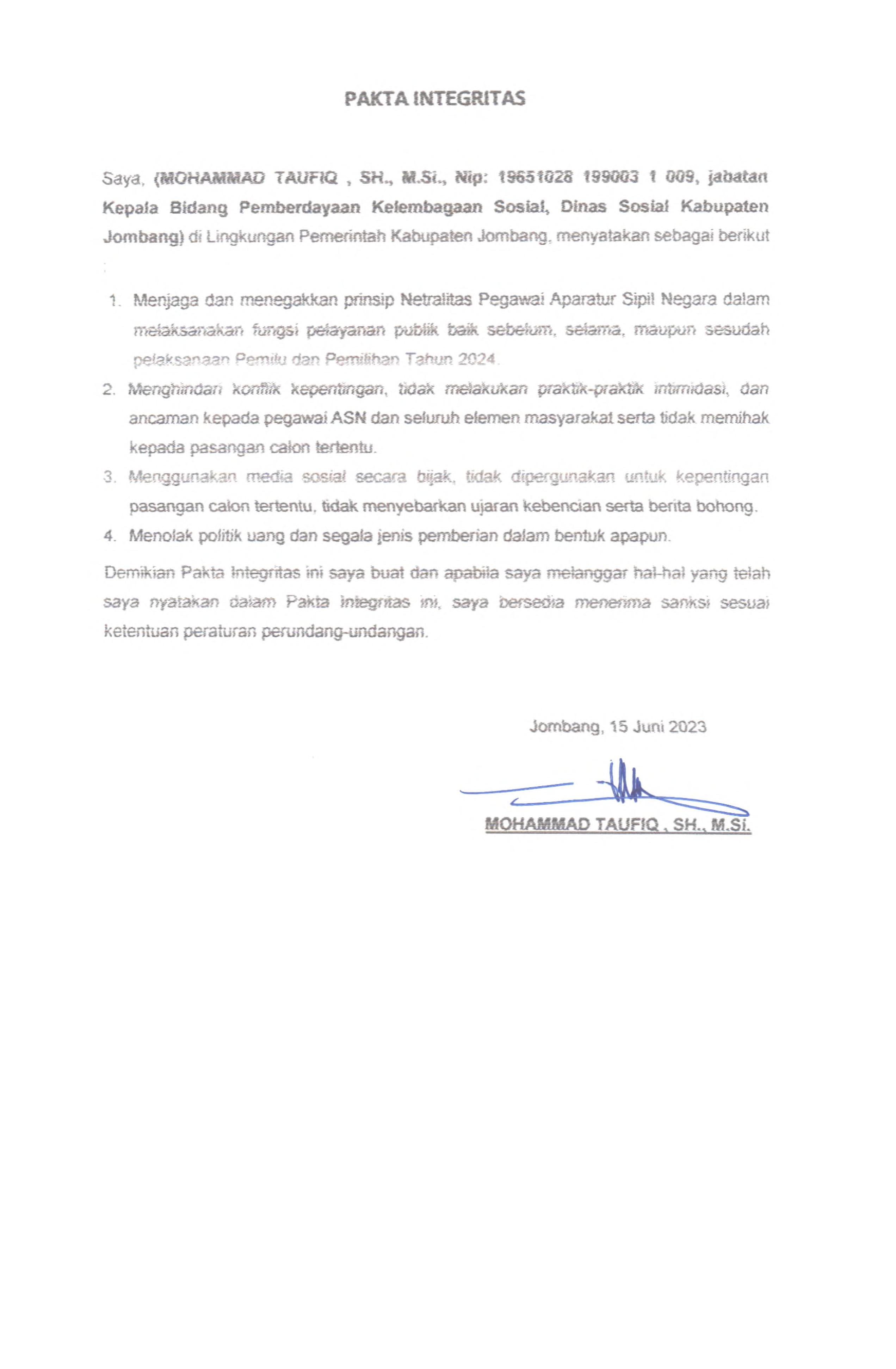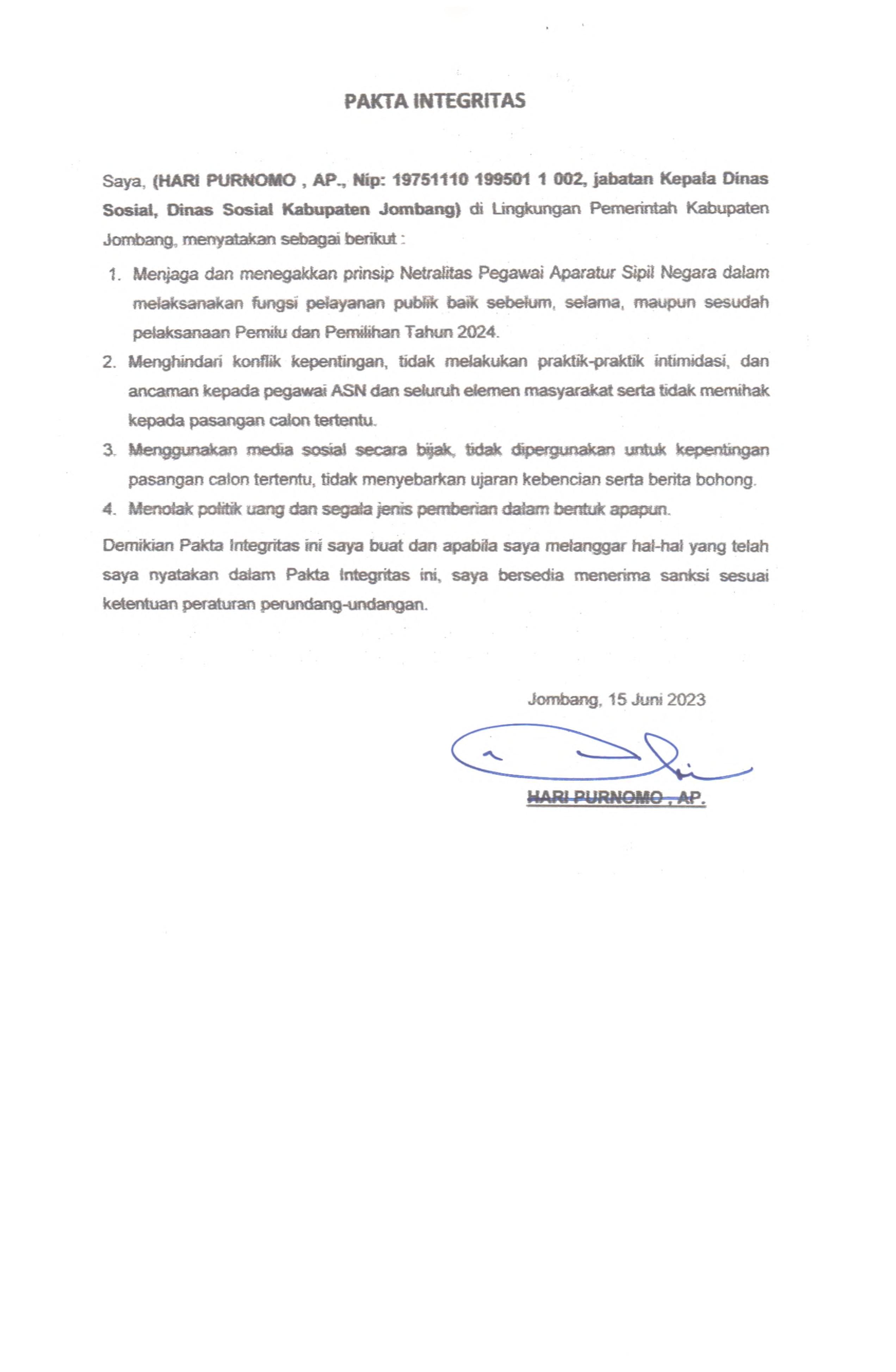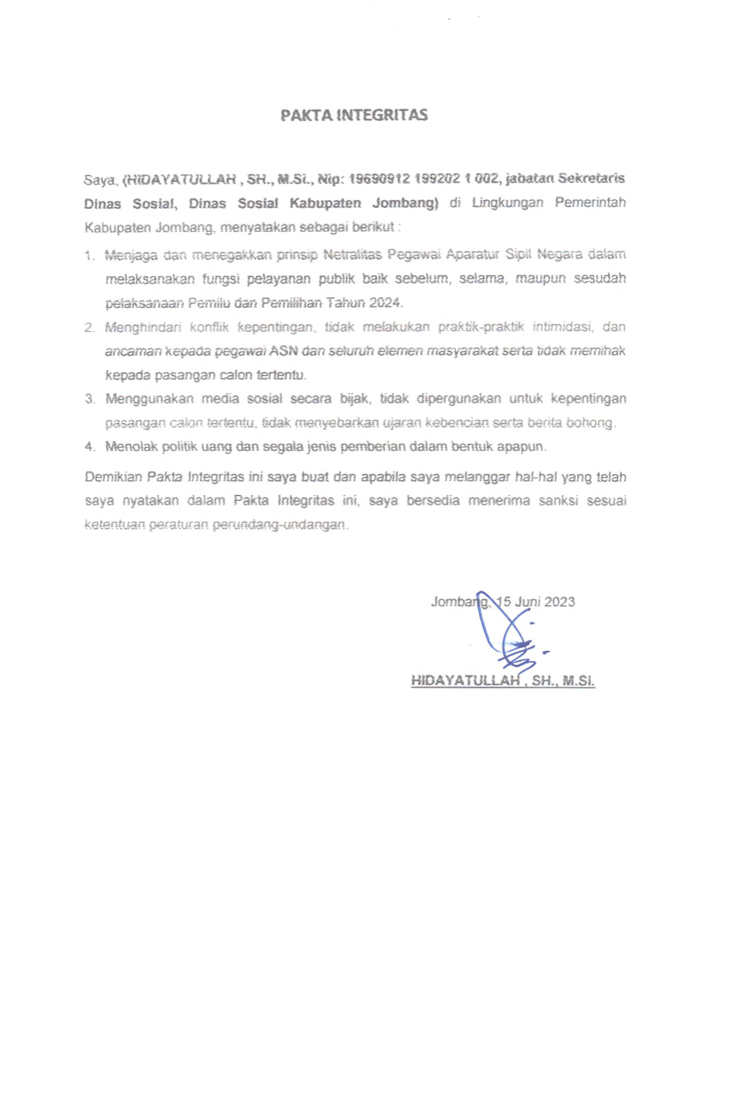 PAKTA INTEGRITAS ASN DINAS SOSIAL 2023