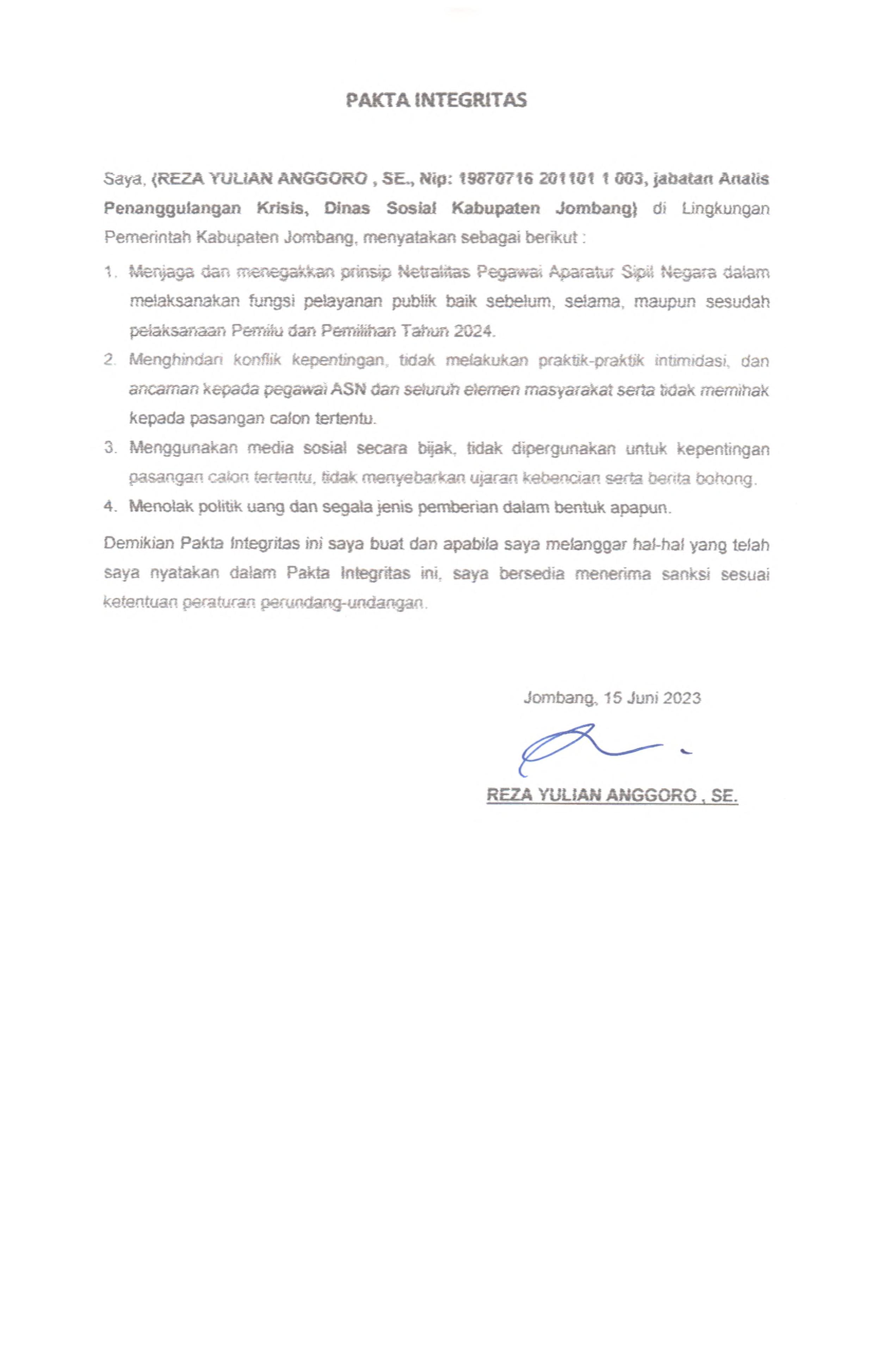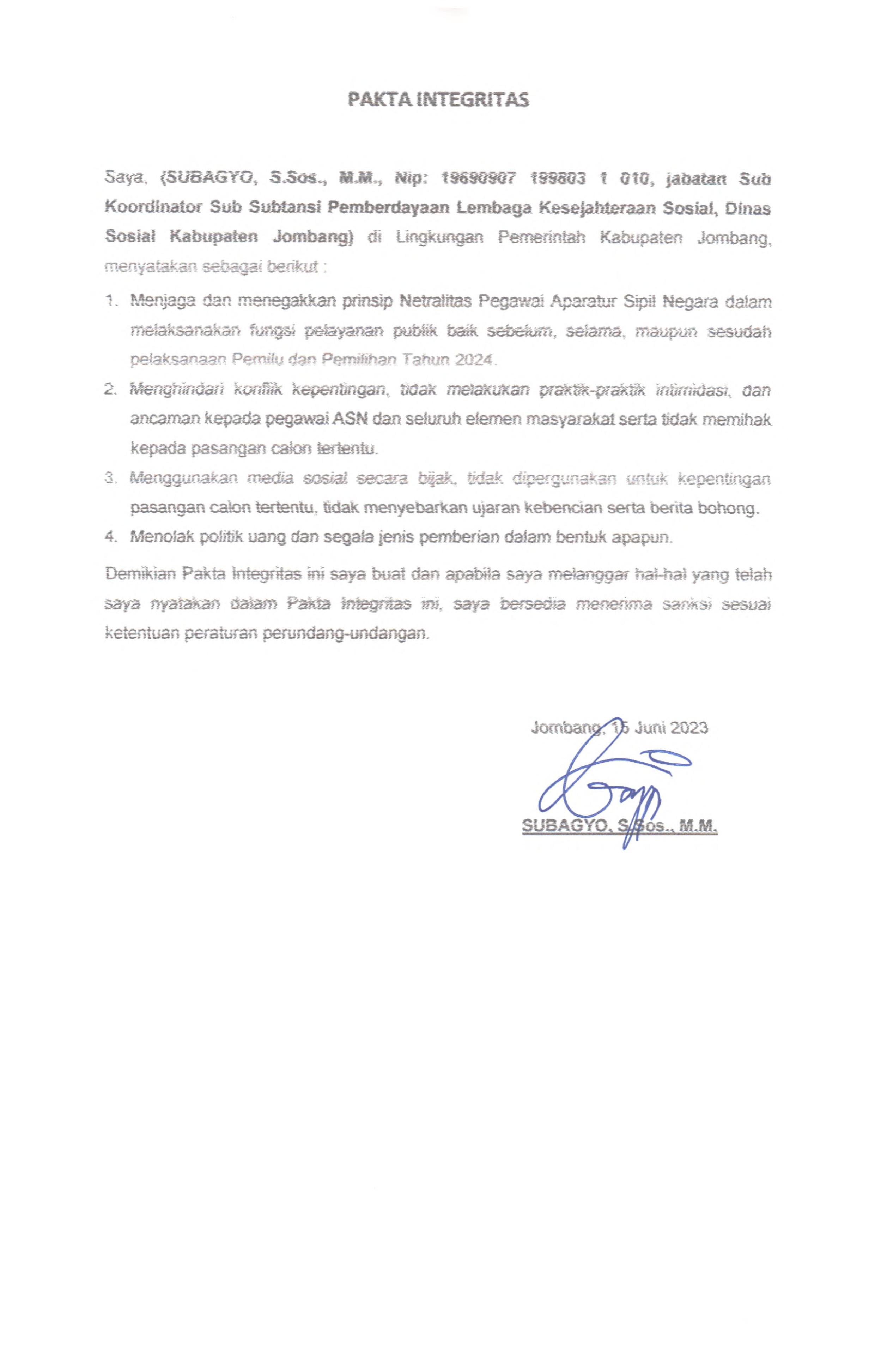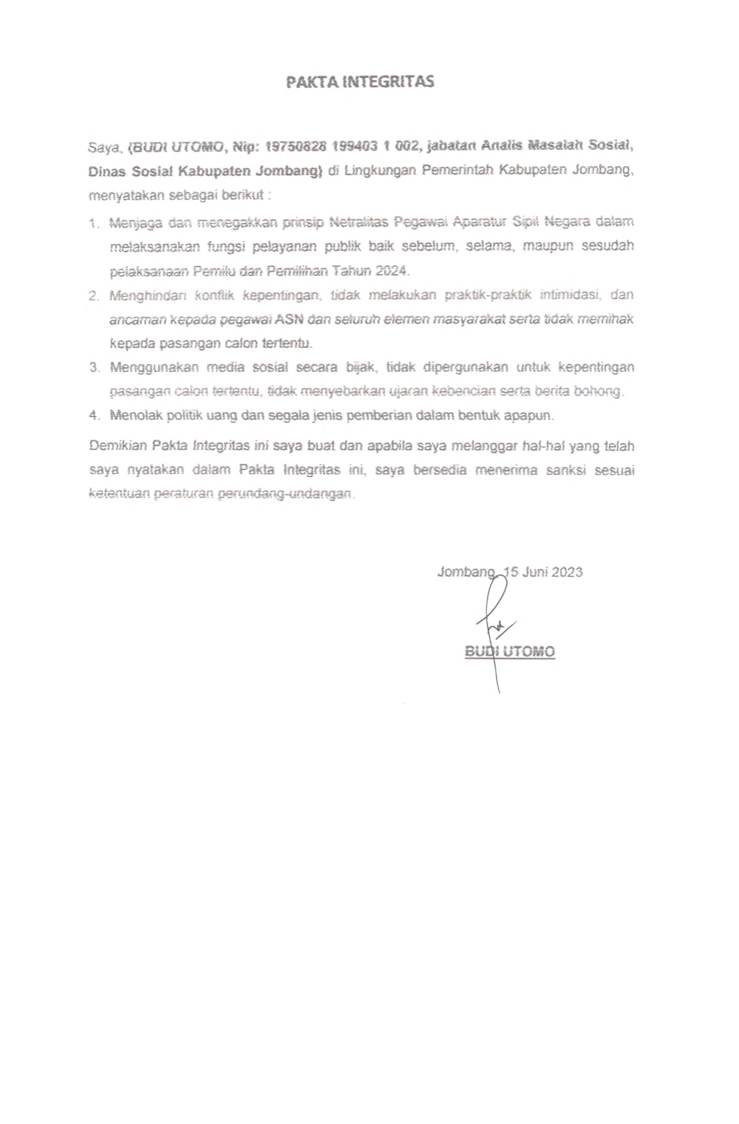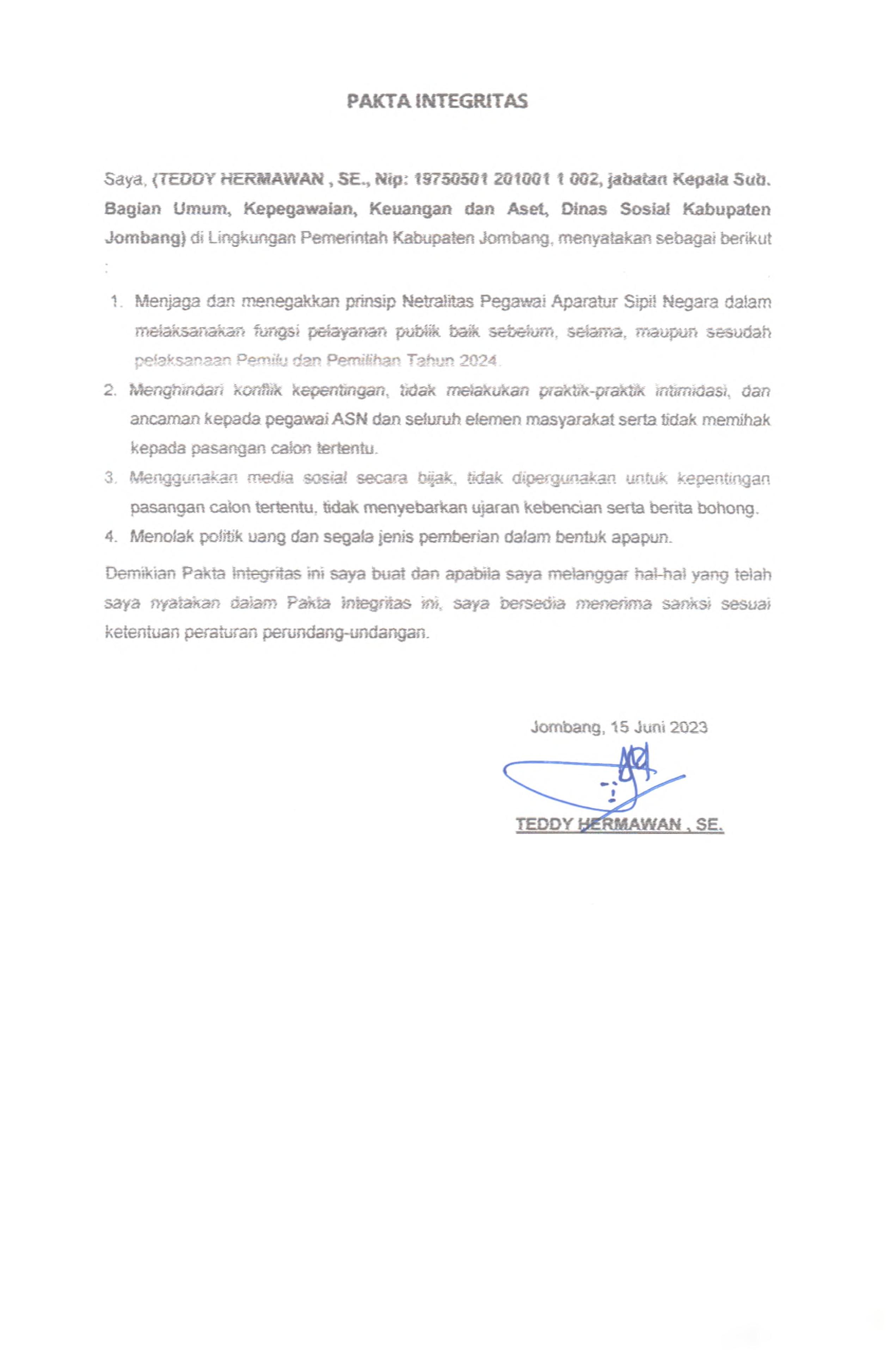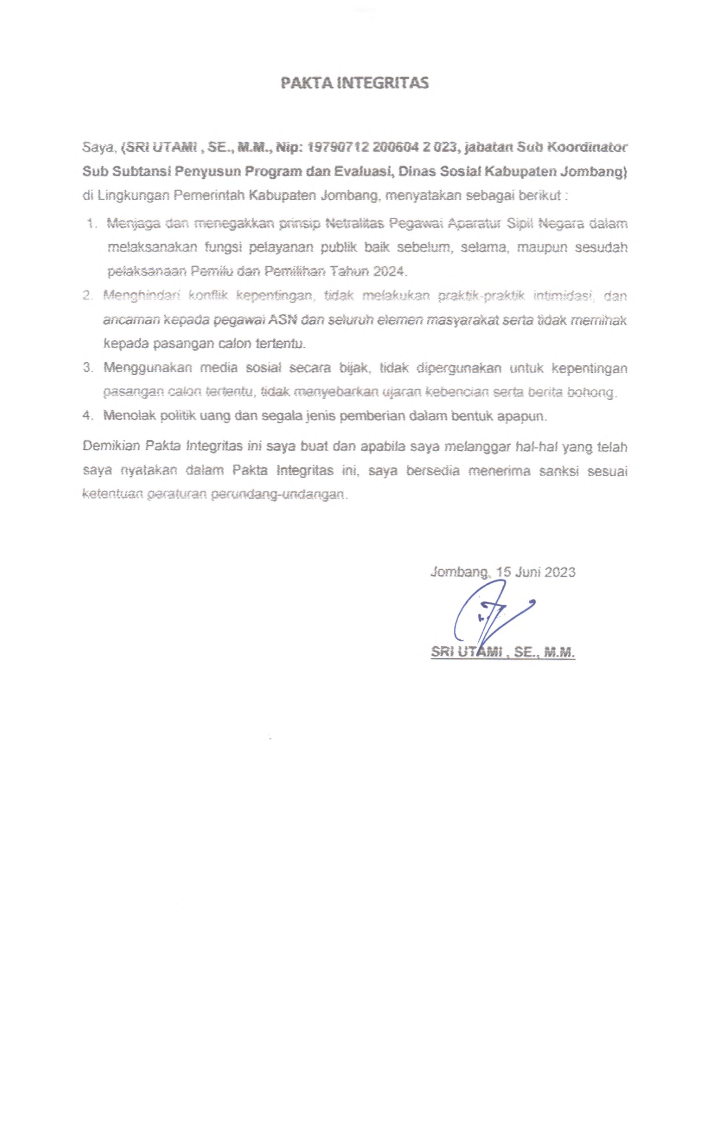 PAKTA INTEGRITAS ASN DINAS SOSIAL 2023