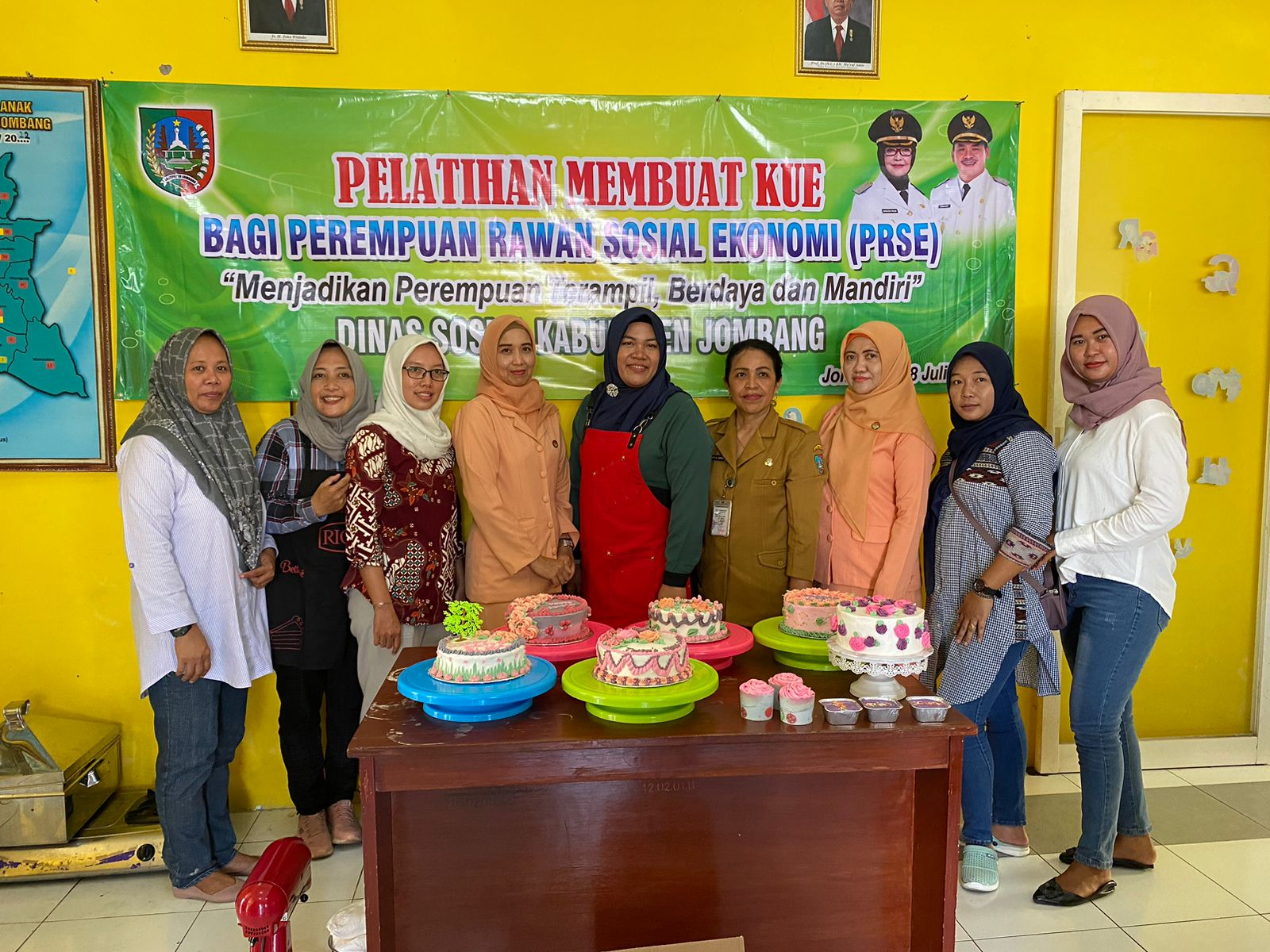 Selasa,18 Juli 2023 bertempat di Gedung RPS Dinsos Kab. Jombang Jl. Kemuning Sekolahan Gg. VI / 4 Desa Candimulyo Kec. Jombang telah diselenggarakan pelatihan membuat kue bagi 20 orang Perempuan Rawan Sosial Ekonomi (PRSE) di Kabupaten Jombang oleh Dinas Sosial Kabupaten Jombang bekerjasama dengan HANA’S KITCHEN JOMBANG.