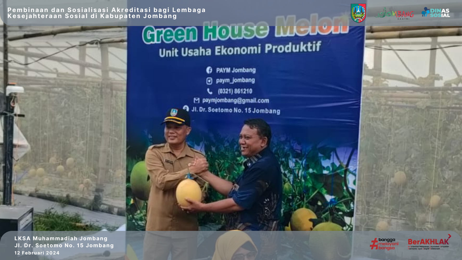 Acara dimulai dengan panen buah melon sebagai bagian dari usaha produktif hasil karya LKSA Muhammadiyah Jombang. Kegiatan ini dihadiri oleh Kepala Dinas Sosial Kabupaten Jombang, Bapak Hari Purnomo, serta anggota LKS se-Kabupaten Jombang. Setelah panen melon, acara dilanjutkan dengan sesi materi yang disampaikan di LKSA Muhammadiyah Jombang.
